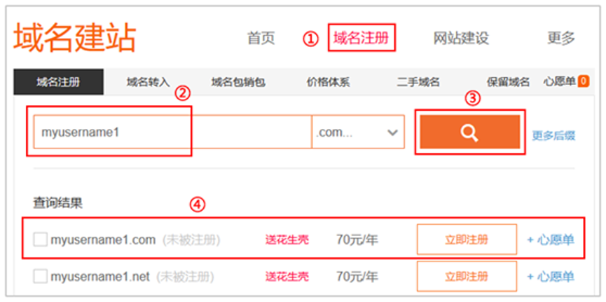 进入贝锐官网,点击【域名建站】——【域名注册】,在域名注册下面的文本框输入要注册的域名的前缀,在“热门域名”选择后缀,点击文本框后面的"查询",只要域名未被注册,在查询结果对应域名后面都会有一个“立即注册”的按钮。