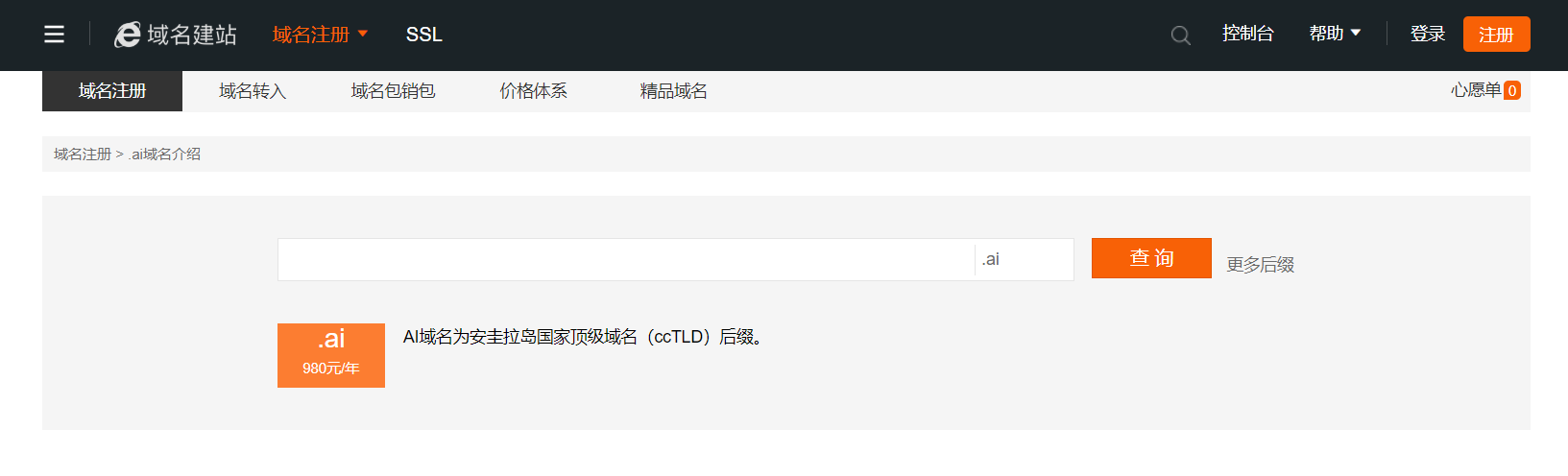 答: AI域名为安圭拉岛国家顶级域名(ccTLD)后缀。