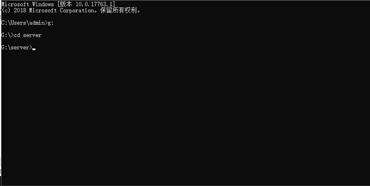 然后打开cmd 进入刚才创建的server目录,比如我这里server放在G盘下;