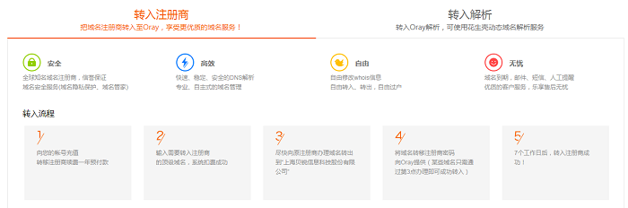 自推出域名注册服务以来,Oray已成为中国十大域名注册服务商之一,通过Oray DNS解析的免费域名和顶级域名累计达到240万个,用户通过Oray强大的域名管理平台可以自由对域名进行参数设置、域名分享、域名过户、域名转移、授权管理、网站备案域名查询等操作。