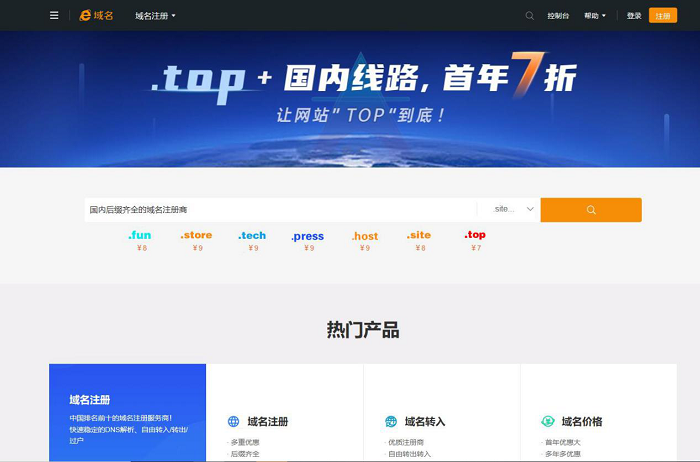 第一步:进入贝锐官网,点击【域名】——【域名注册】,在域名注册下面的文本框输入要注册的域名的前缀,在“热门域名”选择后缀,点击文本框后面的"查询",只要域名未被注册,在查询结果对应域名后面都会有一个“立即注册”的按钮。点击“立即注册”,填写域名注册信息后点击"下一步"。