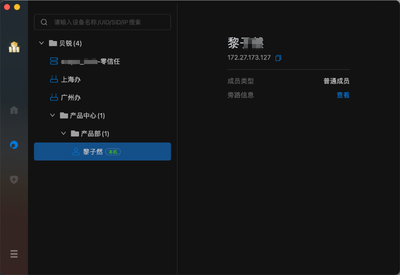 “我的网络”模块中显示当前成员所在的网络及其他网络成员在线状态,如果异地组网存在多级结构,支持多级分组显示。