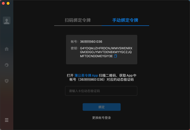 (6)企业版访问端绑定令牌,支持扫码绑定和手动绑定。若蒲公英企业版APP登录与当前企业版访问端不同UID账号,可选择扫码绑定令牌或手动绑定令牌。