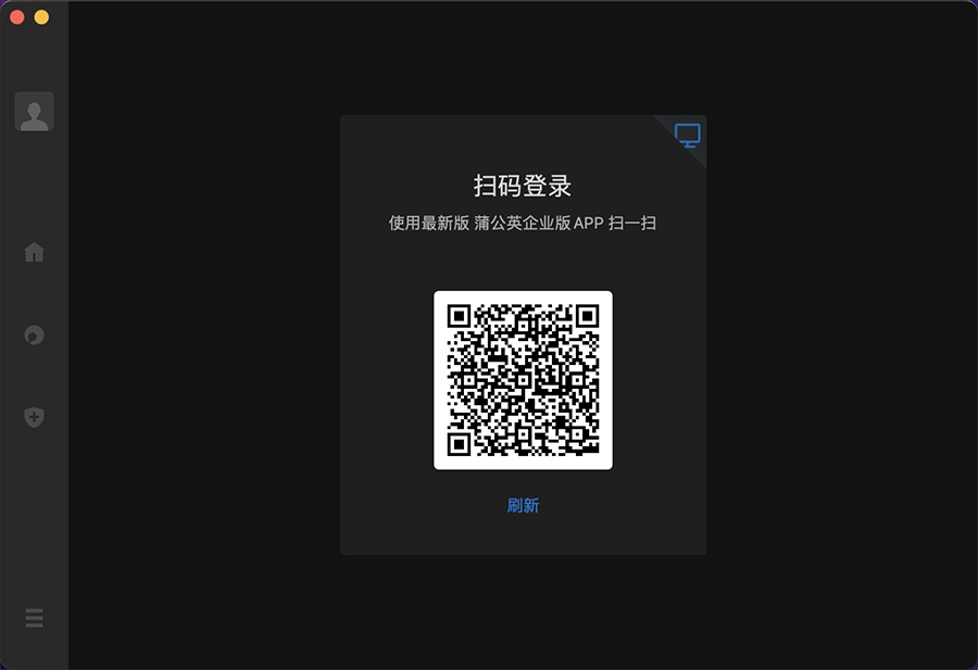 蒲公英企业版v1.4 for macOS支持多种登录方式,分别是:账号登录、手机号+验证码登录、微信授权登录和蒲公英APP扫码登录。