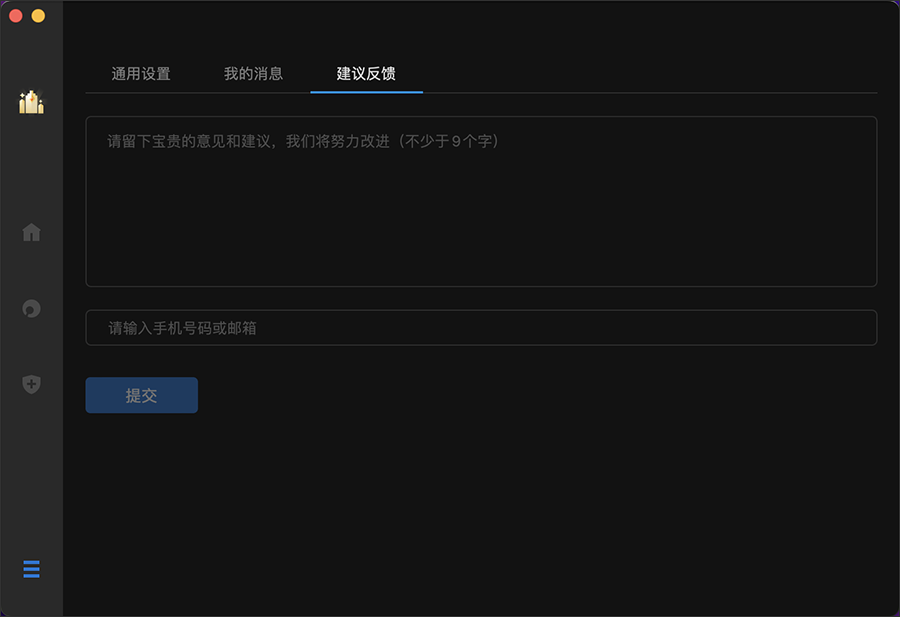 点击“建议反馈”,留下您在使用蒲公英客户端软件过程中宝贵的意见和建议并发送至贝锐。