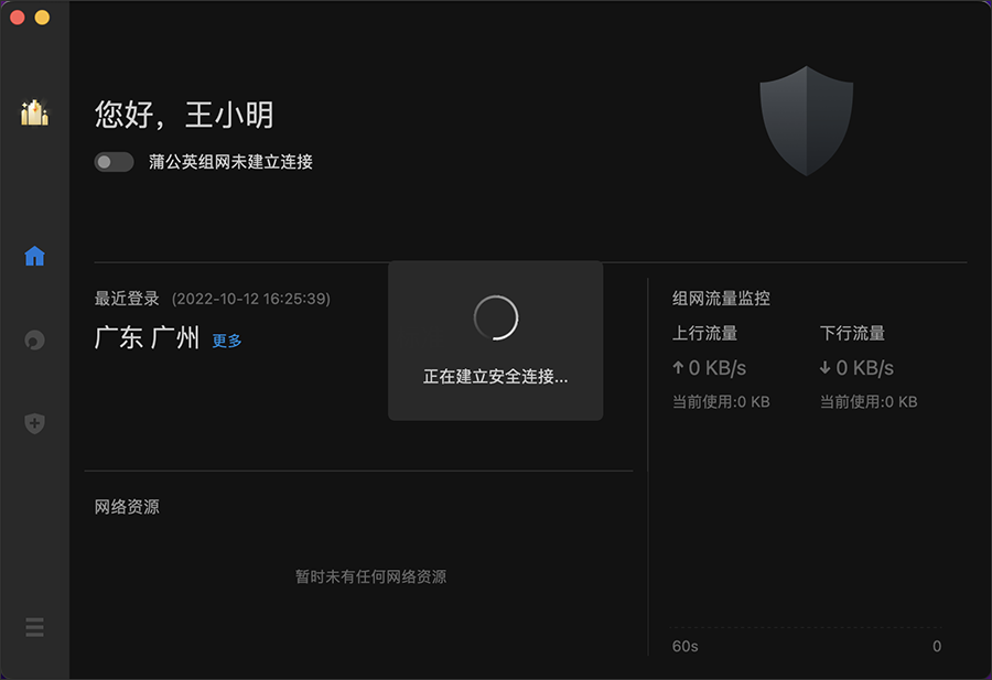 ③登录自动连接组网:登录蒲公英访问端后将自动连接本设备所在的组网;