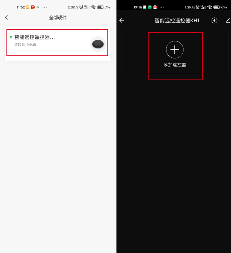 进入【全部硬件】页,选择已添加的遥控器,进入遥控器详情页,如下图,选择“添加遥控器”,进行匹配红外遥控器,举例以下:匹配电视机遥控器。