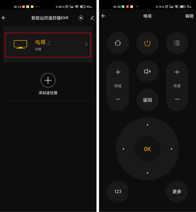 如需遥控电视机,请选择已匹配的“电视”遥控器,进入遥控器面板进行远程遥控,如需添加更多电器遥控器,请继续点击“添加遥控器”即可。
