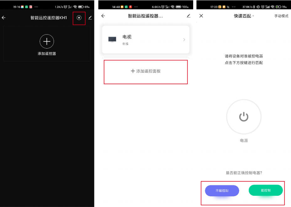 上述添加遥控器面板时,需手动尝试每一个遥控器面板。