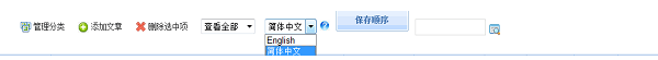 例:在文章管理界面,如果您希望录入英文版文章,则在下图语言列表中,直接切换至English即可。