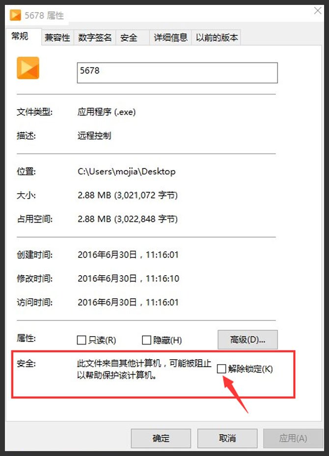 2、鼠标右击安装包图标,进入属性,在常规里面最后一项,选择<解除锁定>即可。