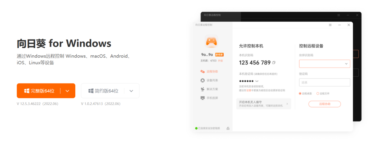 ②立即下载:如需免安装使用被控功能,点击下载向日葵简约版;