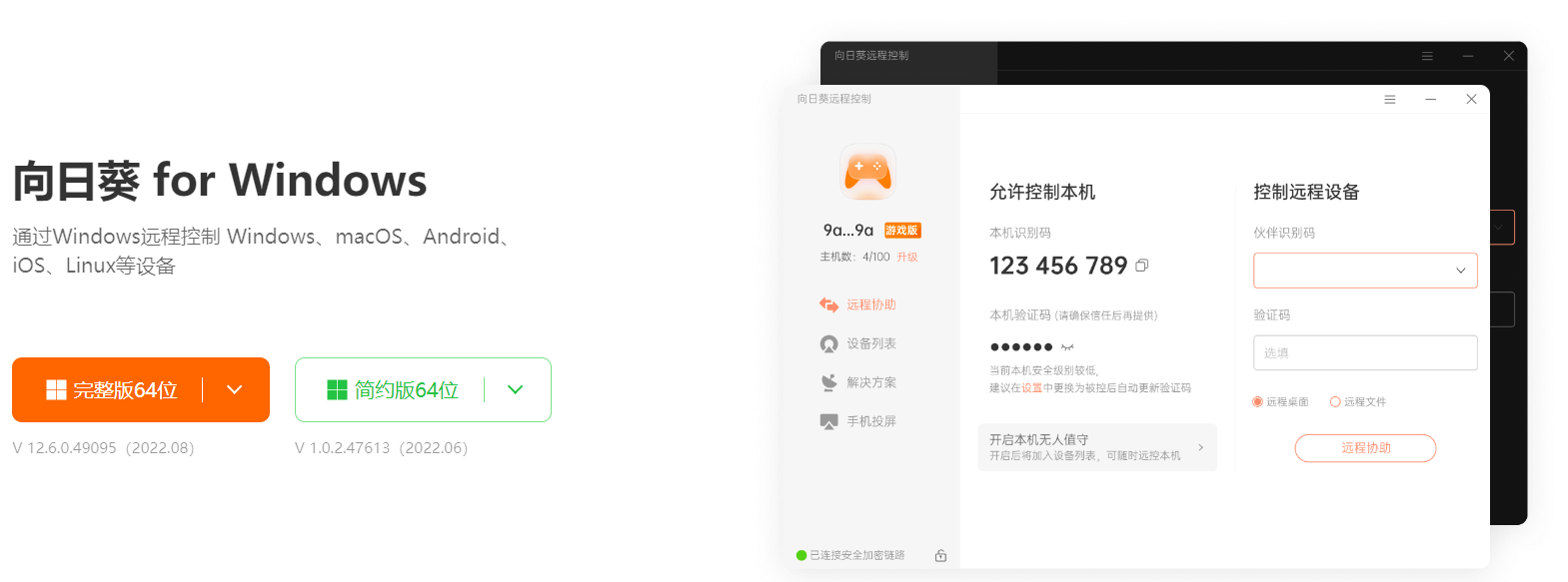 向日葵远程控制软件客户端官方下载:支持Windows XP、Vista、Win7、Win8、Win8.1、Win10等32位/64位系统平台。各大手机应用市场亦可免费下载向日葵远程控制软件。
