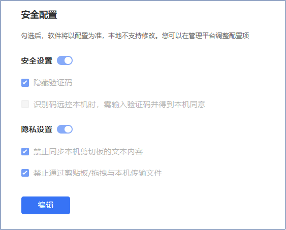 此外,向日葵SOS版支持云端软件配置,可以在后台设置并修改软件的相关配置,在云端调整的设置在本地无法修改,调整后的策略在重启程序后生效,使用更加灵活。
