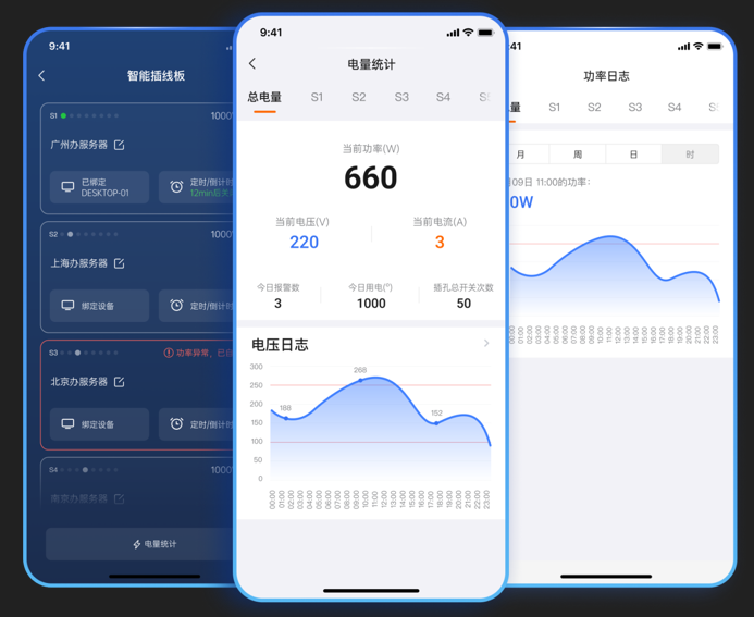 贝锐向日葵智能PDU具备实时监控设备用电,分析设备用电曲线的功能,随时随地通过贝锐向日葵控制端App查看 PDU 实时电压、功率使用情况,及时发现设备故障和电力问题,无需专业人员到场维护,方便企业IT管理员进行每日巡检机房用电,保障企业设备的连续运行和数据安全。