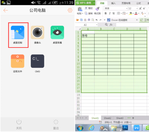 最后,注册账户,两端都用一样的账户登录,在手机端就能够看到账号下的主机。点击主机后,就能看到手机端可以操作的功能,那么我们只要点击“桌面控制”功能就可开启远程办公体验了。远程编辑文档、表格、上传文件,等等,都能轻松实现。
