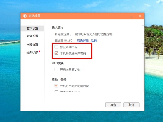 其次,绑定账号之后,在设置中将两个可以设置远程访问密码的地方去掉勾选,这样在主控端远程控制被控端电脑时就不需要输入密码,直接就可以远程控制;