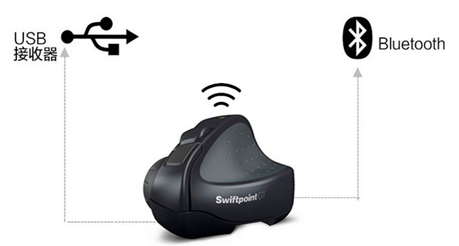 GT鼠标支持两种连接方式,分别为USB接收器连接及蓝牙4.0连接。