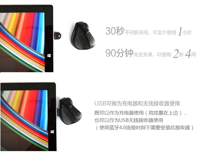 若您通过蓝牙4.0连接GT鼠标,则无需再将USB接收器插在电脑上。