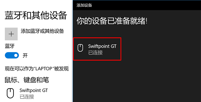 ②此时电脑蓝牙设备管理器中,可搜索到Swiftpoint GT;
