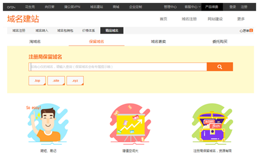 2003年推出域名注册服务以来,Oray已成为中国十大域名注册服务商之一,通过Oray DNS解析的免费域名和顶级域名累计达到240万个,用户通过Oray强大的域名管理平台可以自由对域名进行参数设置、域名分享、域名过户、域名转移、授权管理等操作。