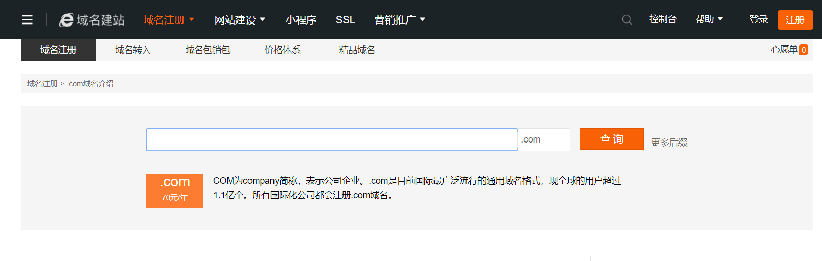com域名注册1元靠谱吗?.com为company简称,表示公司企业。.com是目前国际较广泛流行的通用域名格式,现全球用户超过1.1亿个。所有国际化公司都会注册.com域名。.com 是首批顶级域名 (TLD) 之一,于 1985 年 1 月创建,自此发展为全球较为热销的 TLD。现如今已经存在几十个其他 TLD,但是无论出现了多少个新的域名后缀,人们还是一致认为 .com 依旧是“Web 的当家花旦” 您购买了吗?com域名注册1元靠谱吗?